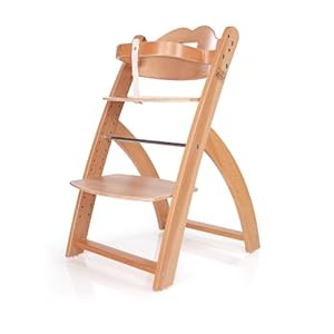 VORSICHT: Das Kind kann sich sehr leicht vom Tisch abstoßen und nach hinten umkippen! Der Stuhl muss immer gesichert werden.